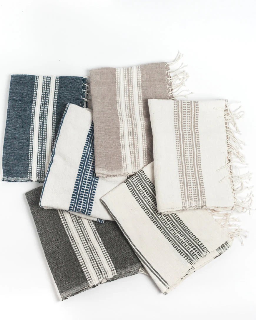 Each towel is hand-woven in Ethiopia using time-honored weaving traditions and AZO-free dyes. Hand-spun Ethiopian cotton adds a uniquely rich texture that will continue to soften and become more absorbent with each wash and dry.