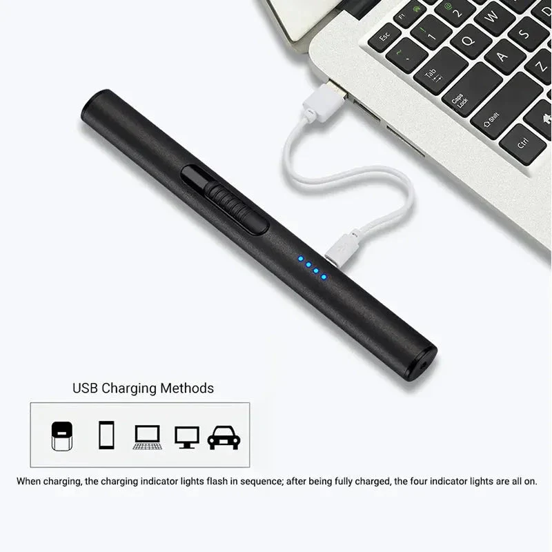 Light your candles the modern way with our sleek, Rechargeable Flameless Candle Lighter in matte black and brushed gold. This USB electric candle lighter uses plasma arc technology—no flame, no fuel, just a clean, windproof spark every time. Perfect for reaching deep wicks in jars, outdoor candle lighting, or stylishly replacing disposable lighters for good.