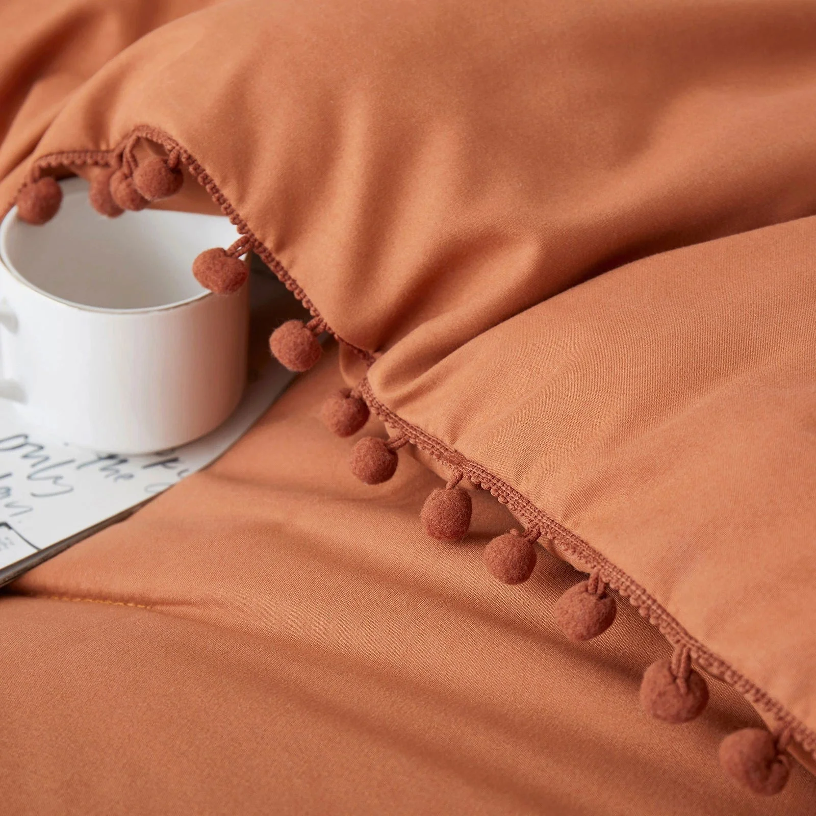 - Charming Pom Pom Design: The boho-inspired pom pom fringe adds a unique, elegant touch to your bedding, creating a chic and playful atmosphere in any room.