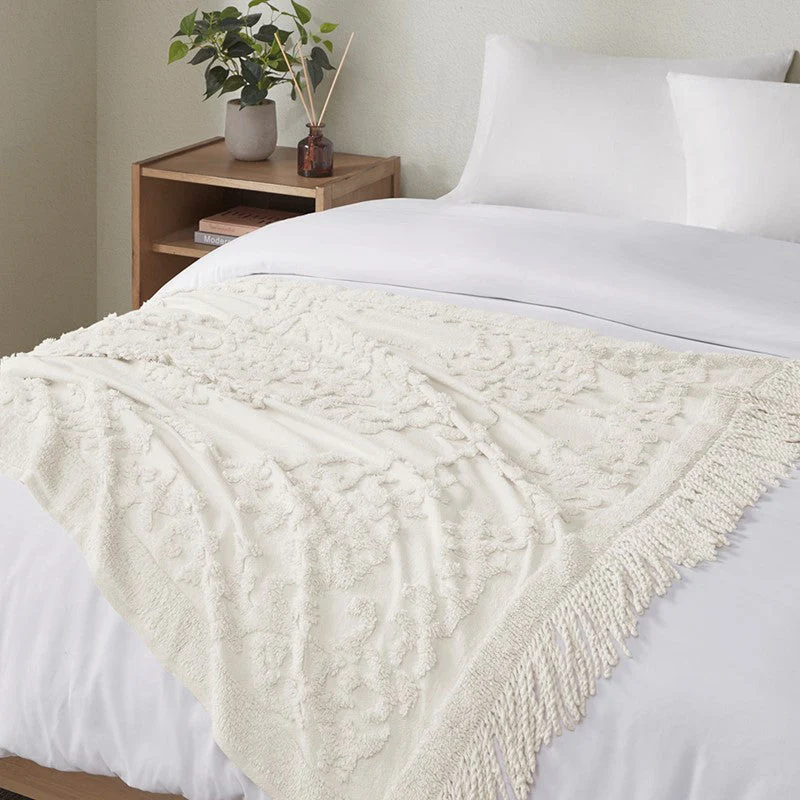 Chloe 100% Cotton Tufted Chenille Lightweight Throw with Fringe Tassel