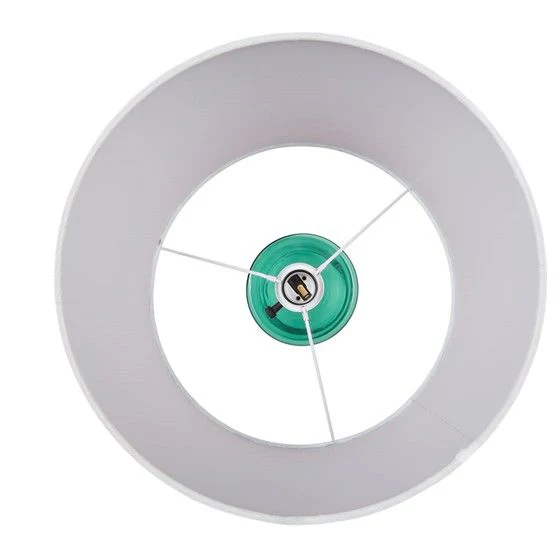 Infuse your space with personality with the 510 Design Neonova table lamp. Boasting a sleek glass body in a captivating blue hue, it's paired with a matching metal base and center rod for a cohesive look. The white drum-shaped shade adds a chic contrast while softly filtering light to emit a warm glow. Equipped with an on/off rotary switch and included LED bulb, it's as stylish as it is functional. Spot clean only. Illuminate your room with charm and flair using this delightful lamp!