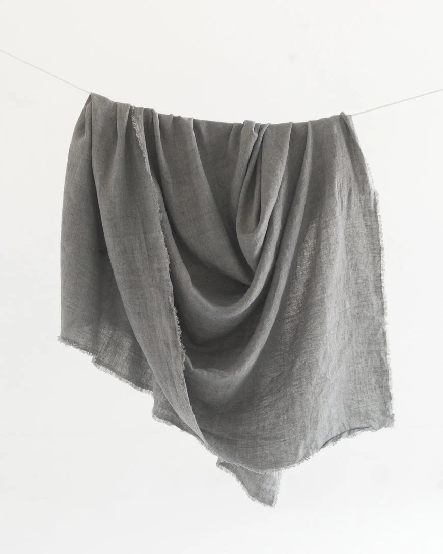 This versatile piece is a generously sized 84 x 60 inches and doubles perfectly as a tablecloth or lightweight throw. Frayed edges add texture to a classic and timeless stone washed colors.